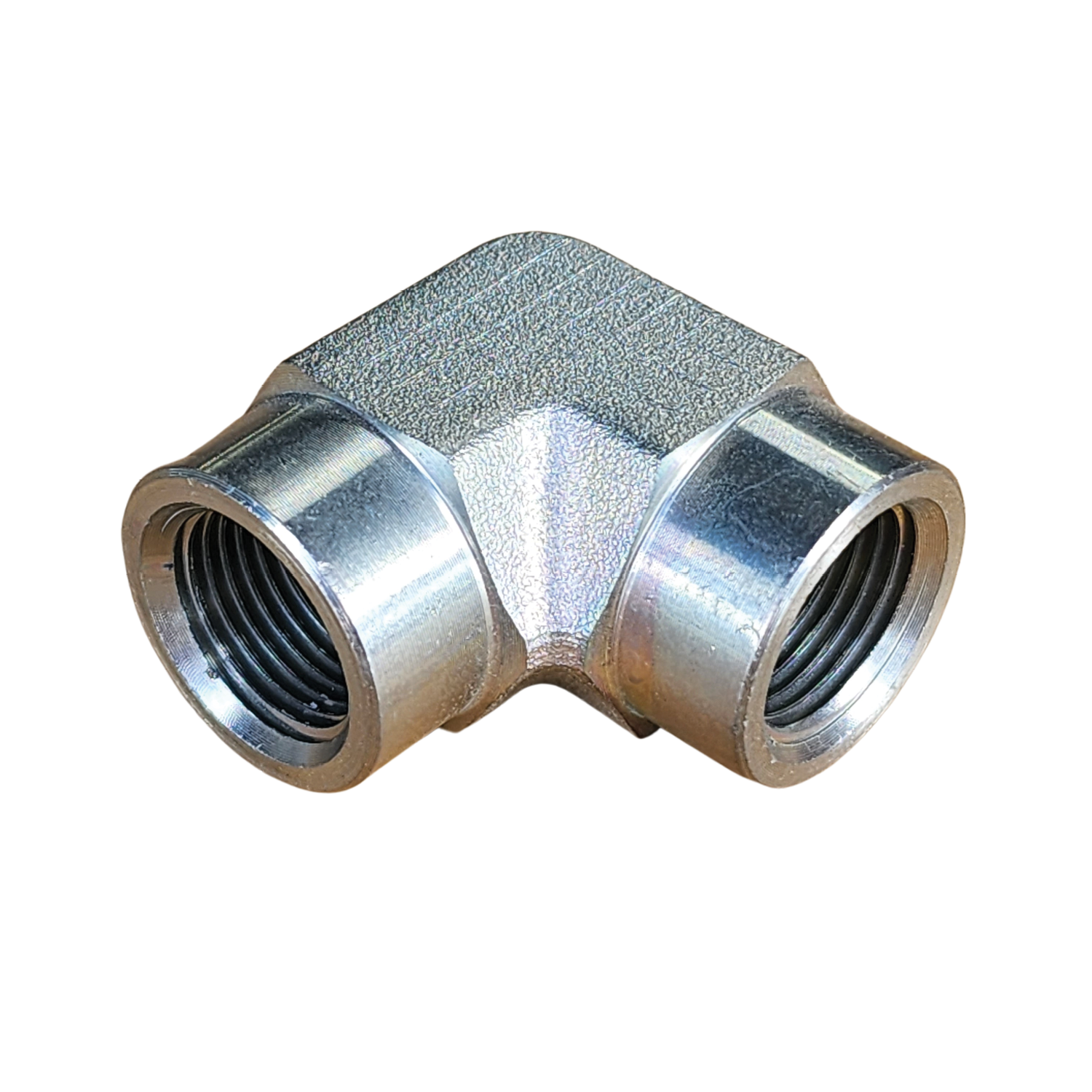 NPF-NPF90 – NPT Fixed Female x Female 90° Elbow adaptor connects two NPT (National Pipe Taper) male fittings at a right angle, providing a strong and reliable directional change in hydraulic or fluid-transfer systems. Designed for high-pressure performance, this elbow ensures a tight, leak-free seal between taper-threaded connections.