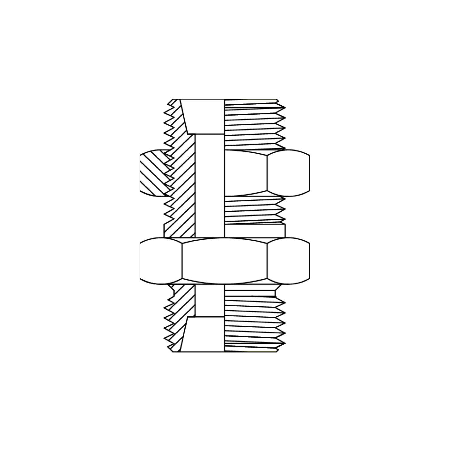DHMB-DHM – DIN Metric Heavy Male Bulkhead x DIN Metric Heavy Male adaptor provides a secure, leak-free connection through panels or bulkheads in hydraulic systems. Designed for DIN 2353 Heavy Series applications, it allows reliable joining of tube and hose assemblies while maintaining structural integrity and pressure performance.