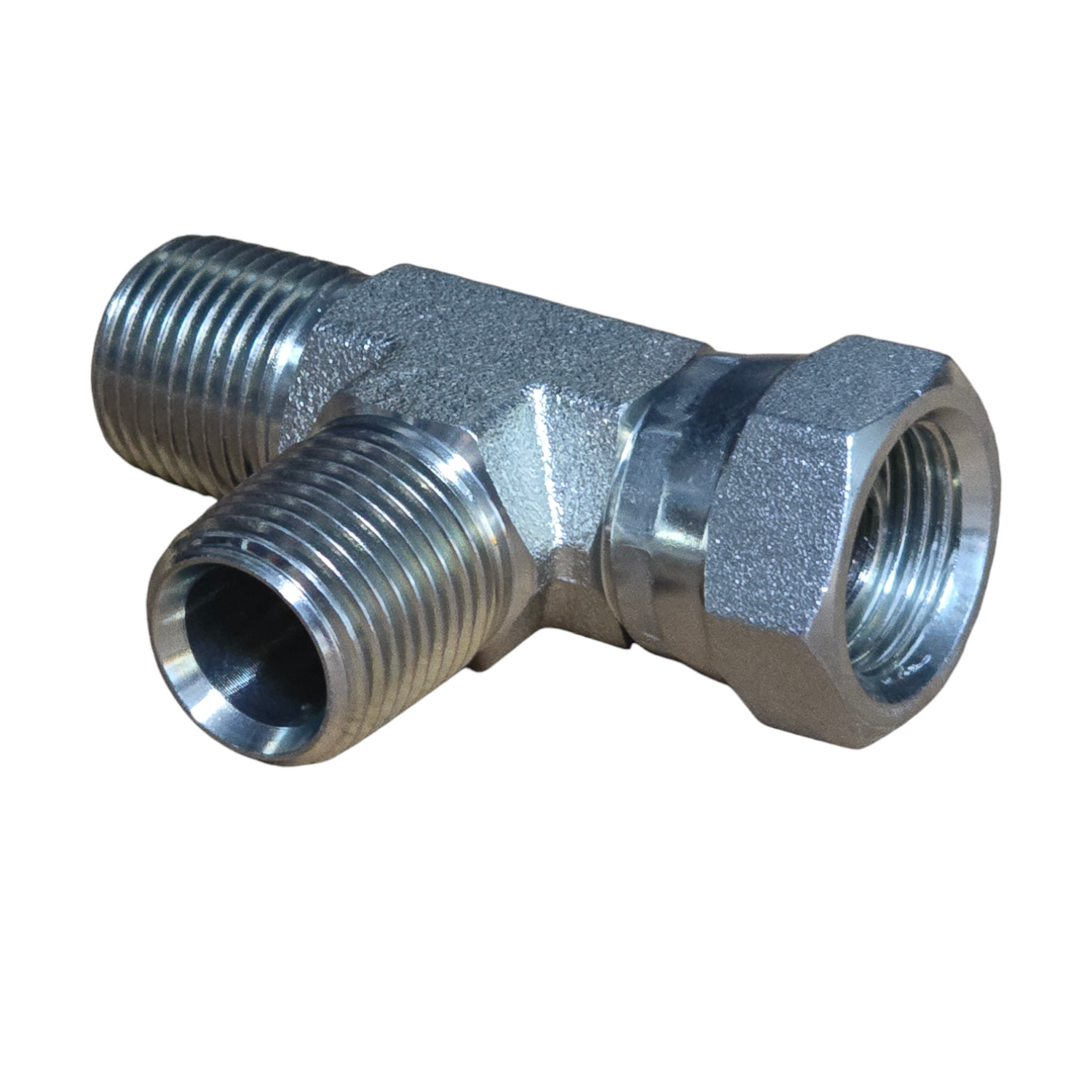 • BSPT Male x BSPP Female Swivel x BSPT Male (Run Tee) configuration