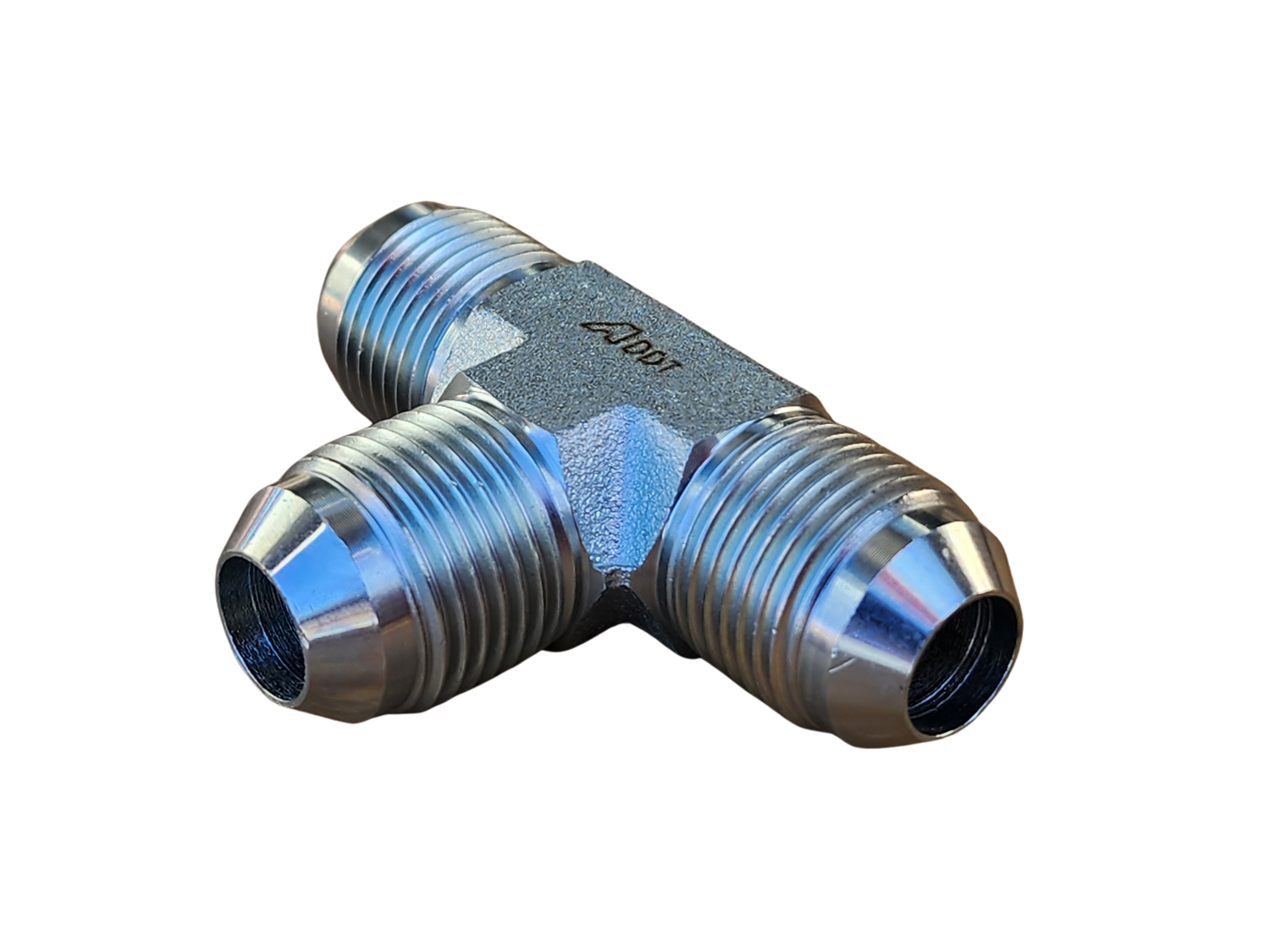 JCM-JCM-JCM – JIC Male Tee adaptor connects three JIC (Joint Industry Council) 37° flare fittings of the same size in a T-shaped configuration. It provides a durable, leak-free junction for branching hydraulic lines while maintaining high-pressure integrity. This fitting is ideal for creating clean, compact connections in hydraulic and fluid-transfer systems.