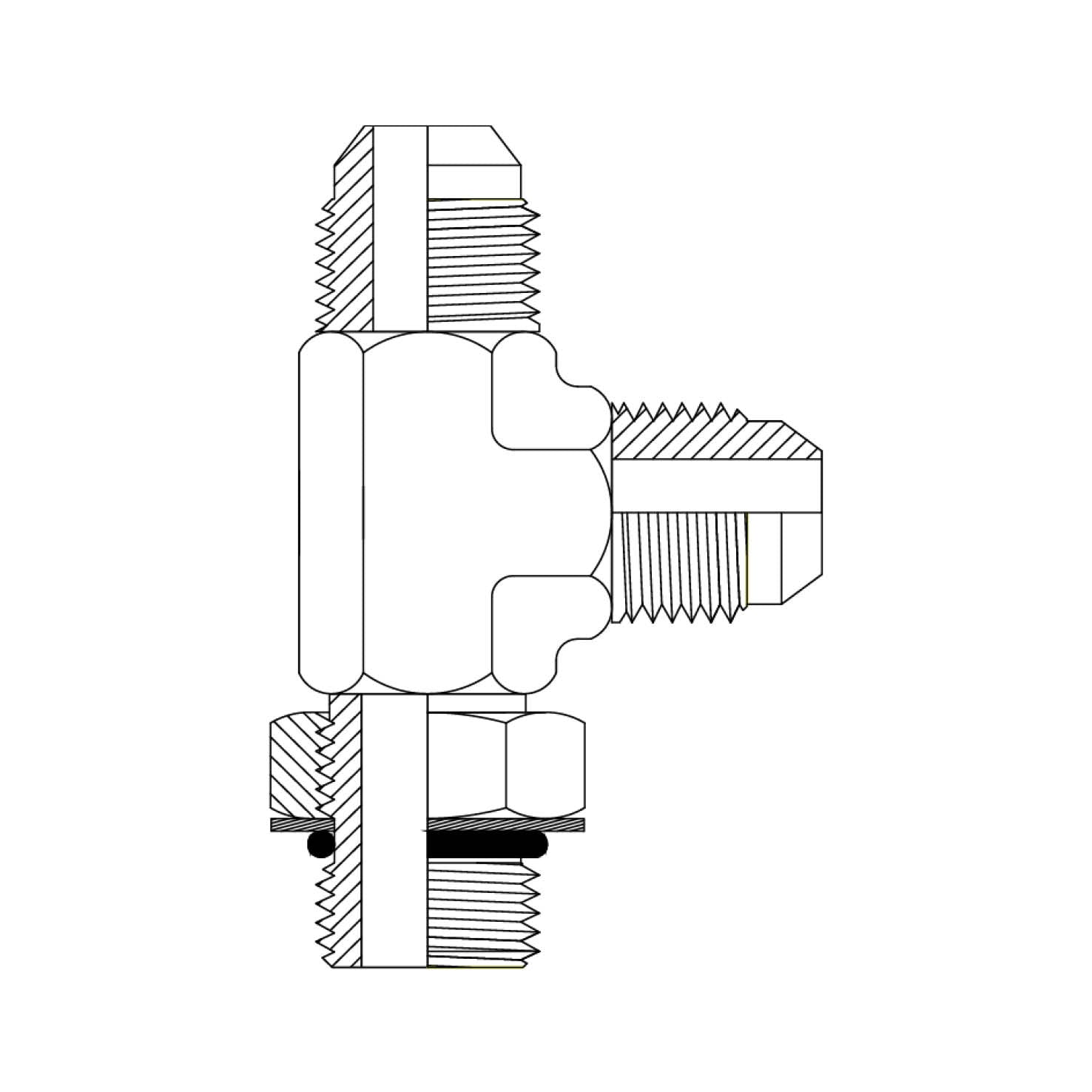 - Connects 37° JIC flare fittings with a UNO O-ring branch outlet