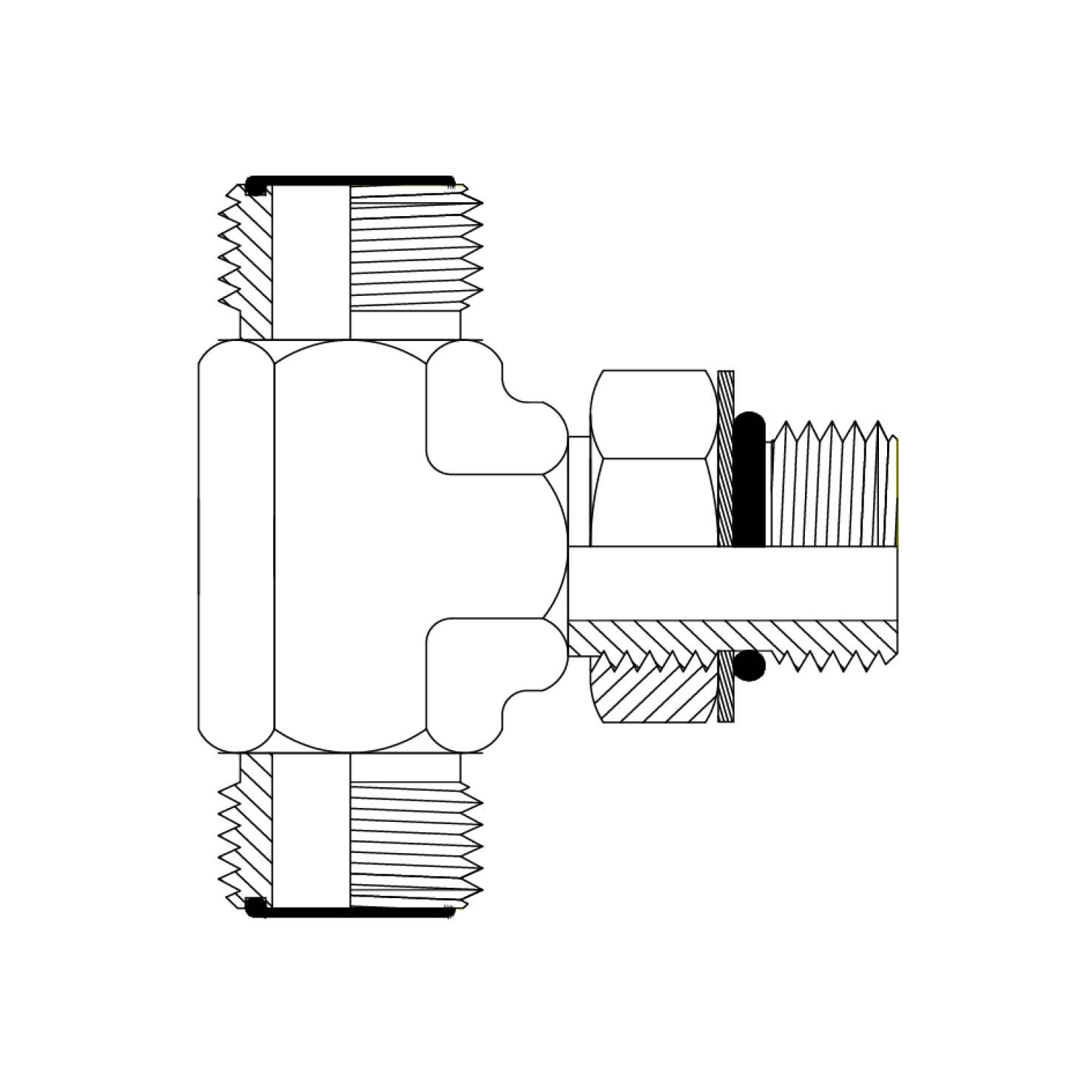 - ORFS Male × UNO Male Bulkhead Branch Tee configuration