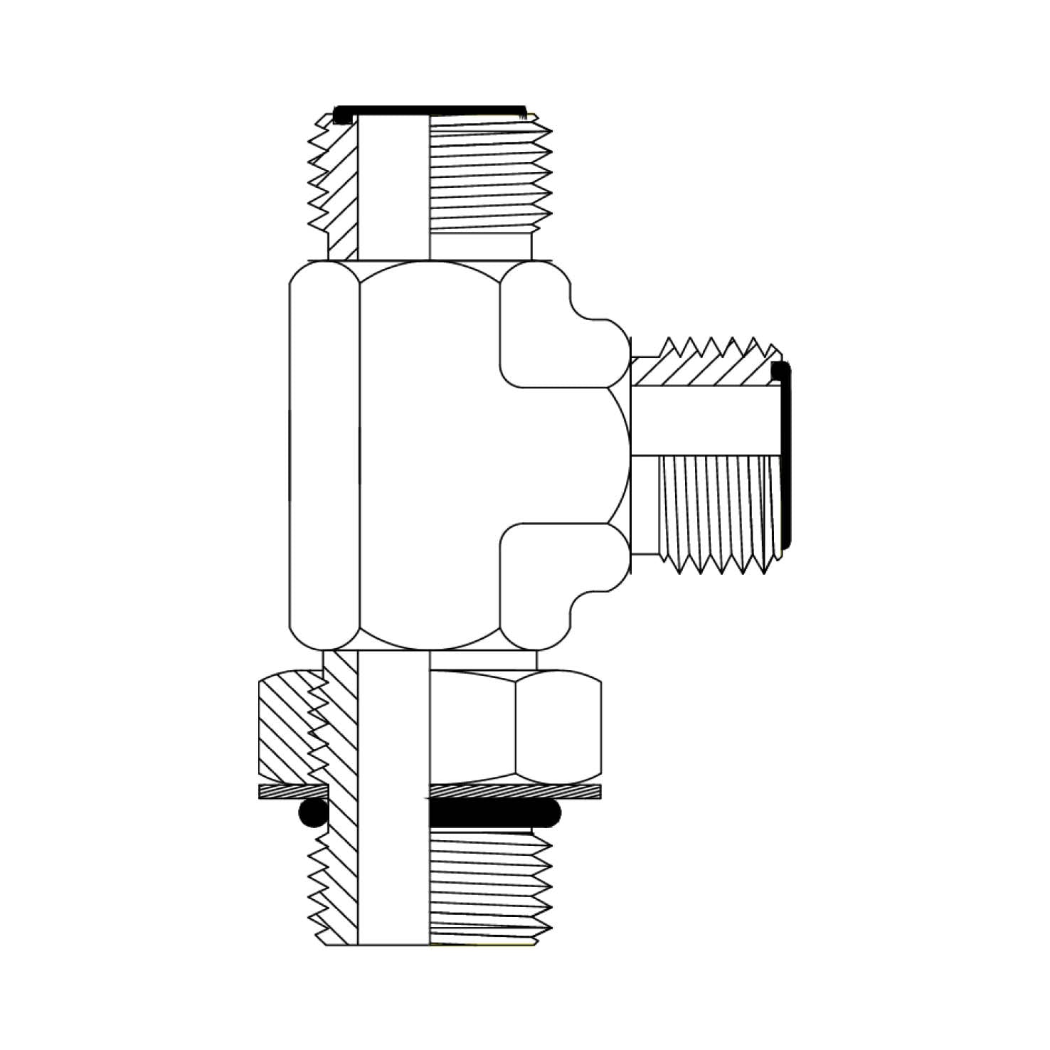 - ORFS Male × UNO Male Bulkhead Run Tee configuration