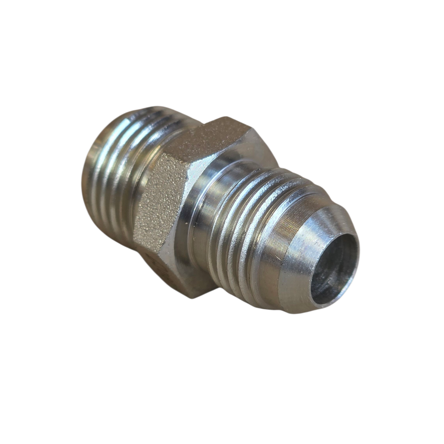 JCM-SIM – JIC Male x SAE Inverted (45° Flare) Male adaptor connects JIC (Joint Industry Council) 37° flare fittings to SAE Inverted 45° flare fittings, providing a secure, leak-free transition between two common hydraulic and automotive thread standards. It ensures reliable sealing and smooth flow in both low- and high-pressure applications.