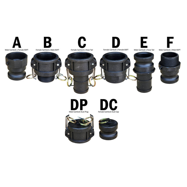 Polypropylene Camlock Fittings – ½" to 4" Quick Connect Couplers